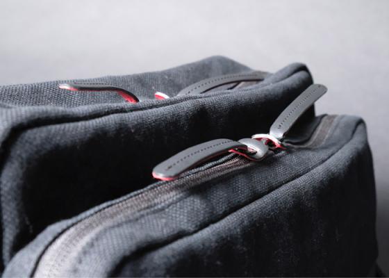 ・ファスナー引き手の裏側を赤にしたことで、さりげなく視認性を高め、軽快でスポーティーに仕上げました。