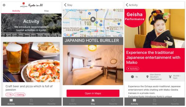 ガーネットが訪日外国人観光客向けに京都市内で300室以上展開するシティホテル「JAPANING HOTEL」の利用客を主なターゲットとして、「JAPANING HOTEL」の情報をはじめ、観光地や飲食店の紹介、京都体験のアクティビティの予約まで、京都滞在を充実させるサービスをワンストップで提供するスマホアプリです。昨年11月のテストリリースからアップデートを重ね、このたびより本格的に提供を開始いたしました。