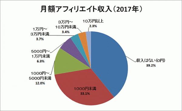 ■アフィリエイト市場調査2017: 月3万円以上が5.7%、月1,000円未満が72.3%