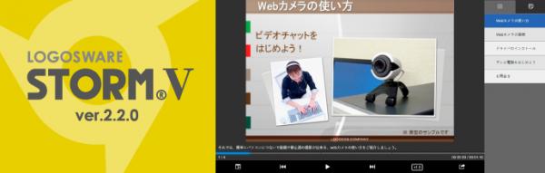 ロゴスウェア株式会社(本社:茨城県つくば市、代表取締役社長:石神 優)は、プレゼン型コンテンツ作成ソフト「STORM V」(ストーム・ヴイ)最新版(v2.2.0)において、新たに、動画書き出しやパソコン画面の録画ツールなどを整備し、旧Flash対応版(STORM Maker)との機能差を解消しました。これにより、全てのユーザーがHTML5対応の「STORM V」に移行できる環境が整いました。