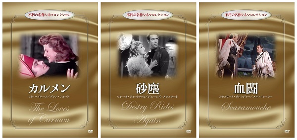 大好評「不朽の名作シネマコレクション」シリーズに、情熱的な美女との悲恋を描いた名作『カルメン』、ウエスタンの傑作『砂塵』、ラファエル・サバティニの小説「スカラムーシュ」を映画化した『血闘』の3作品が登場しました!