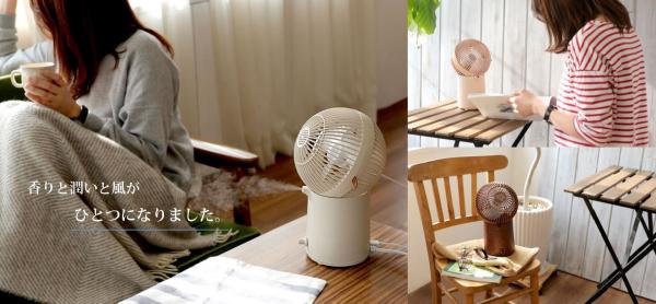 超音波式加湿器と扇風機が一体となった新感覚の商品・アロマミストファン。