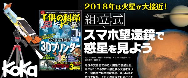 スマホ・タブレット時代の高性能天体望遠鏡PalPANDAを発売するTOCOLは、大接近する火星や土星をスマホで簡単に撮影できる「KoKa組立式スマホ望遠鏡キット」を「子供の科学」とコラボし、2月10日発売した。