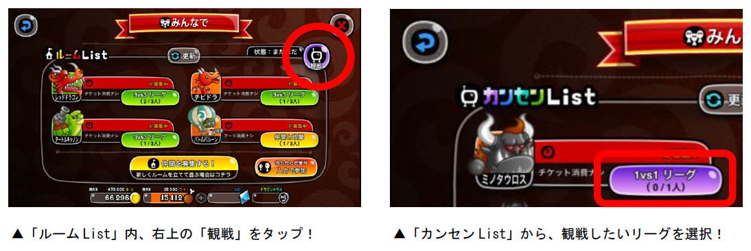 今回開催中の「リーグ」のバトルを観戦した際、「観戦した側のチーム」が勝利すると、報酬としてドラゴンメダルが2枚もらえます。報酬のドラゴンメダルが獲得できるよう、リーグに挑む城主を応援しましょう!