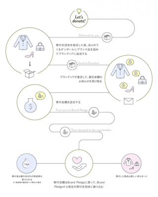 Brand Pledgeは、ブランディアの宅配買取サービスを通して不要になったブランド品や衣類を送り、その買取金額の一部を支援したいNPOやNGO等の非営利団体に寄付ができる新しいオンライン寄付サービスです。寄付金額は買取金額からお客さまご自身で設定、寄付先の団体はSyncablに登録する約150団体(2018年2月現在)の中から選択することができます。
