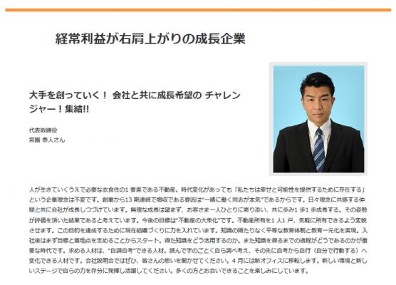 首都圏の投資マンションを開発から分譲・管理まで一貫して行うNITOH株式会社(所在地:東京都渋谷区道玄坂2-10-7新大宗ビル5号館4階、代表:宮園泰人)http://www.nitoh.co.jpは、新卒者向け説明会が解禁とされた3月1日の日経新聞朝刊の新卒採用広告特集に、「私たちは幸せと可能性を提供するために存在する」の企業理念から13期連で増収増益の要因を“一緒に働く同志が本気”だからと伝えております。2019年の新卒採用で求める人材として“自調自考”できる人材。そして会社と共に成長希望のチャレンジャーを求めて多くの学生とお会いできるのを楽しみにしておりますとNITOH株式会社の宮園 泰人がコメントしました。