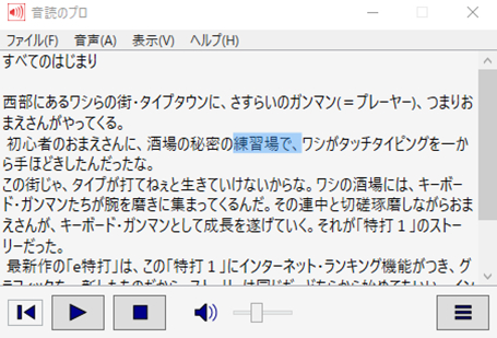 長い文章でも一括で読み上げができます。文章の途中でも、選択した箇所から読み上げることもできます。再生中は読み上げ箇所が青色に変わるので、どの箇所かすぐにわかります。
