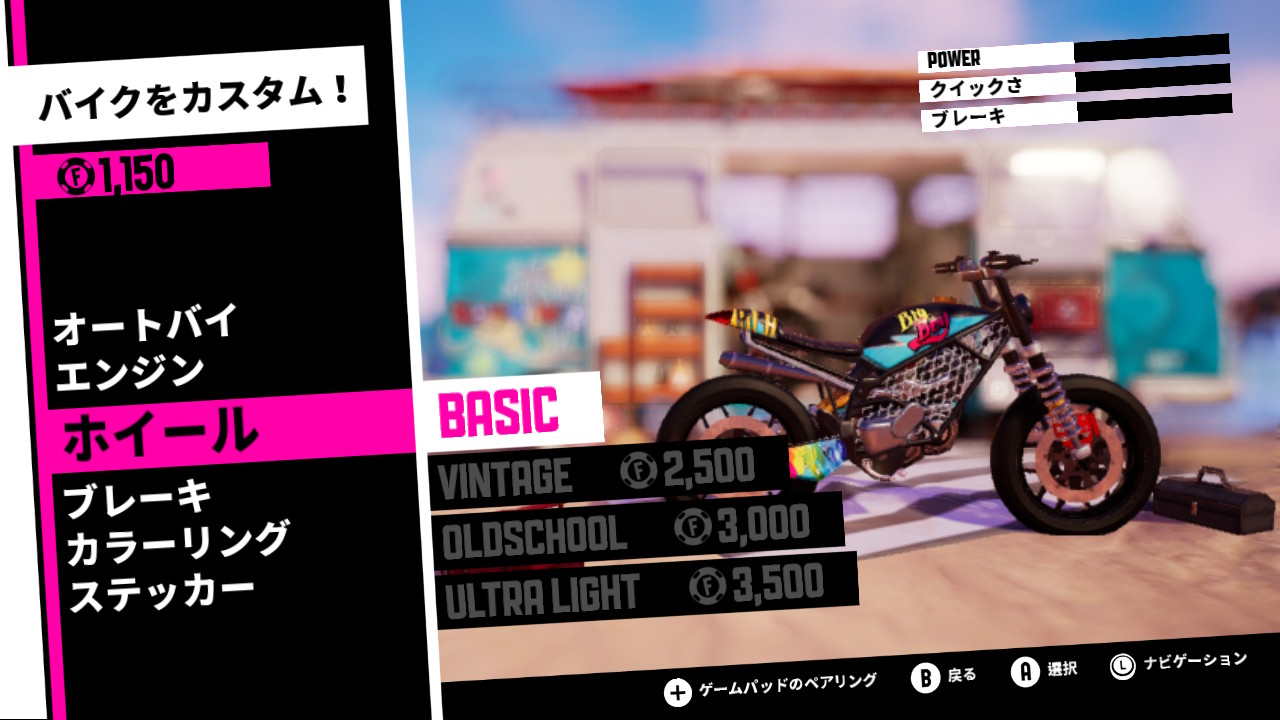 ・コスチュームとバイクのカスタマイズが可能