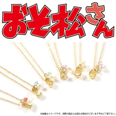 サイズ:ネックレス:約8×5mmの数字チャーム/直径約3mmのキャラカラーガラス/直径約3mmのプラパール/チェーン全長約45cm/アジャスター先に約12×7mmの松型チャーム付き