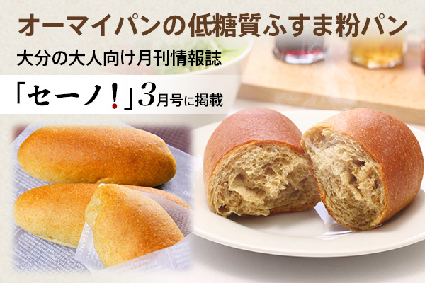 株式会社OTOGINO(オトギノ:代表取締役社長 鬼武公洋 本社 大分県日田市北友田 2 丁目 2123 番地 1)のE-コマースにて販売している【低糖質ふすま粉パン】(http://www.ohmypan.jp)が、大分県内の温泉・お宿・飲食などの“ちょっといいもの”の情報を中心に掲載している月刊情報誌「セーノ!」3月号(2018年3月1日発行)の『偉い!うまいもん名人』のコーナーにて取り上げられました。