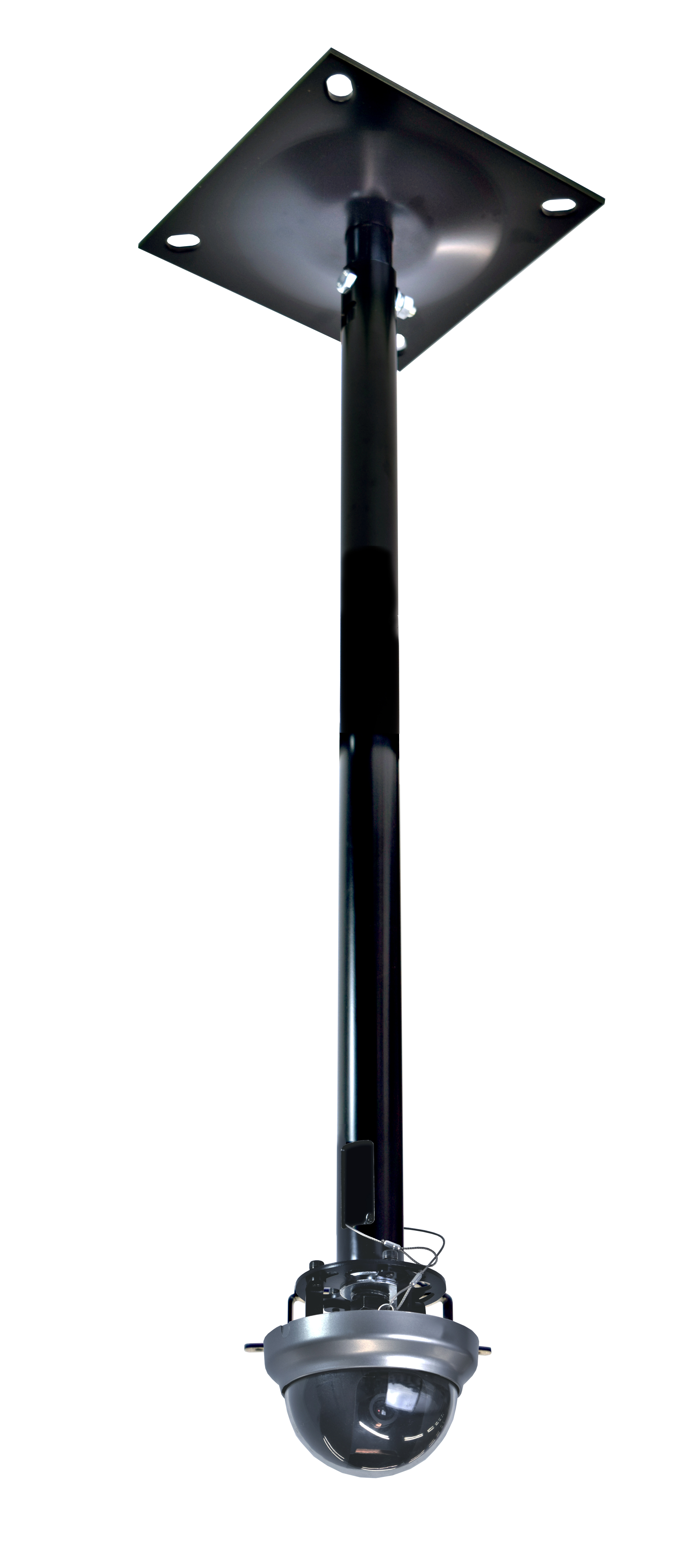 ボックス型カメラに対しては、HCC-Mのフックタイプ、ドーム型カメラにはユニバーサルタイプHCC-Uの2種の金具で対応いたします。取付方法は天井直付けパイプによる天井取付(※1)、スラブ吊下げパイプによる設置の2タイプから選べ、特にスラブ取付タイプは選択するパイプ長次第(※2)で、高天井から吊下げる時に、お好みの高さに設置しやすくなります。