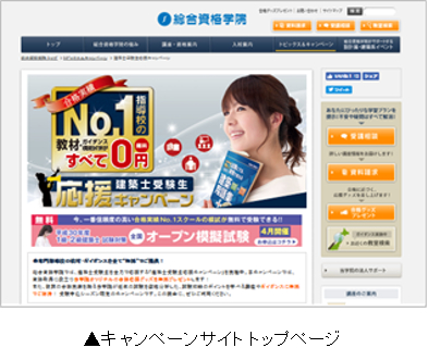 当キャンペーンは“真の技術者”の育成を通して、建設業界の発展に貢献するという当学院が掲げる企業理念の下、合格実績No.1(※)指導校「総合資格学院」のノウハウを凝縮した教材・ガイダンス・模擬試験を建築士受験生に無料で提供するものです。申込は当学院キャンペーンサイトから、平成30年6月30日(土)まで受け付けます。