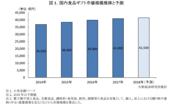◆2017年の国内食品ギフト市場規模は前年比102.8%の4兆1,000億円とプラス成長