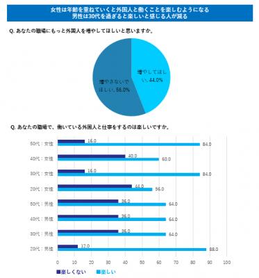 ・女性は年齢を重ねるほど外国人と働くことを楽しむようになる