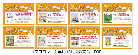 トーハンオリジナル拡材として、出版社様の協力により「マヨコレ!」専用の銘柄別販売台・POP、フェア告知ポスターを作成し、書店店頭にてお客様が「迷った時にすぐに選べる」売場作りをサポートします。