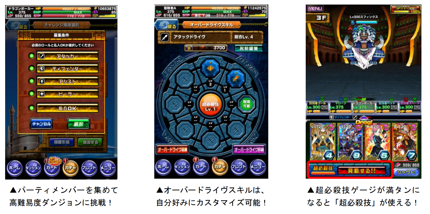 「タワーダンジョン」では、装備することでバトル時に「超必殺技」を使用できるようになる「オーバードライブシステム」を搭載。カスタマイズしたオーバードライブを駆使して、100階層に待ち受けるラスボスの討伐を目指しましょう!