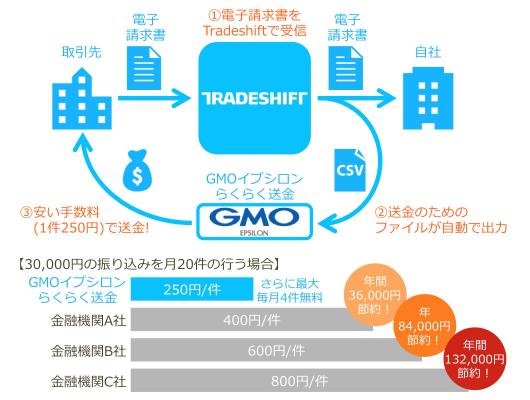 トレードシフトジャパン株式会社(本社:東京都渋谷区、代表取締役社長:大久保紀章、以下、トレードシフト)は、GMOイプシロン株式会社(本社:東京都渋谷区、代表取締役社長:新井 悠介 以下、GMOイプシロン)が提供する安価な手数料でオンラインでの振込ができる「GMOイプシロン らくらく送金」と、トレードシフトが提供する電子取引プラットフォーム「Tradeshift」とのデータ連携サービスを開始しました。また、「GMOイプシロン らくらく送金」サービスの申込もTradeshift内にあるAppStoreのアプリから可能となりました。