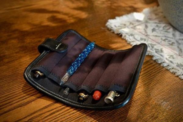携帯をあきらめていた繊細なガラスペンも、いつも持ち歩くことができ、まるで“オムレット”のように、あなたの筆記具を優しく包み込みます。