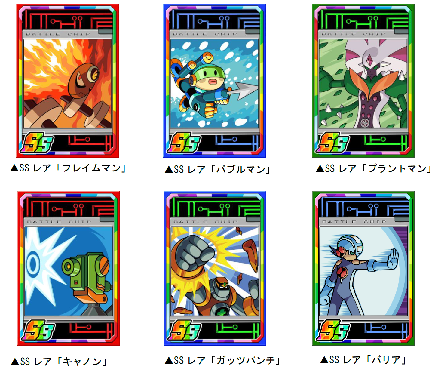 スペシャルダンジョンのボスモンスターを倒すと、まれに限定子分カード「フレイムマン」「バブルマン」「プラントマン」のバトルチップ風限定子分カードが手に入ることがあります。また、ダンジョンの中では、「キャノン」「ガッツパンチ」「バリア」の限定子分カードも手に入れる事が可能です。限定子分カードは、複数枚集めると進化ができ、子分スキルの効果が強力になります。このコラボスペシャルダンジョンでしか手に入らないさまざまな限定カードの獲得を目指しましょう。