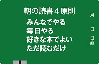 学校で毎朝、ホームルームや授業の始まる前の10分間、生徒と教師がそれぞれに、自分の読みたい本を読む「朝の読書」活動。「みんなでやる」「毎日やる」「好きな本でよい」「ただ読むだけ」を原則とした感想文や評価のない自由な読書活動です。