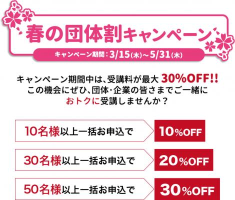 さらにこの春、10名様以上一括お申込でおトクに受講できる