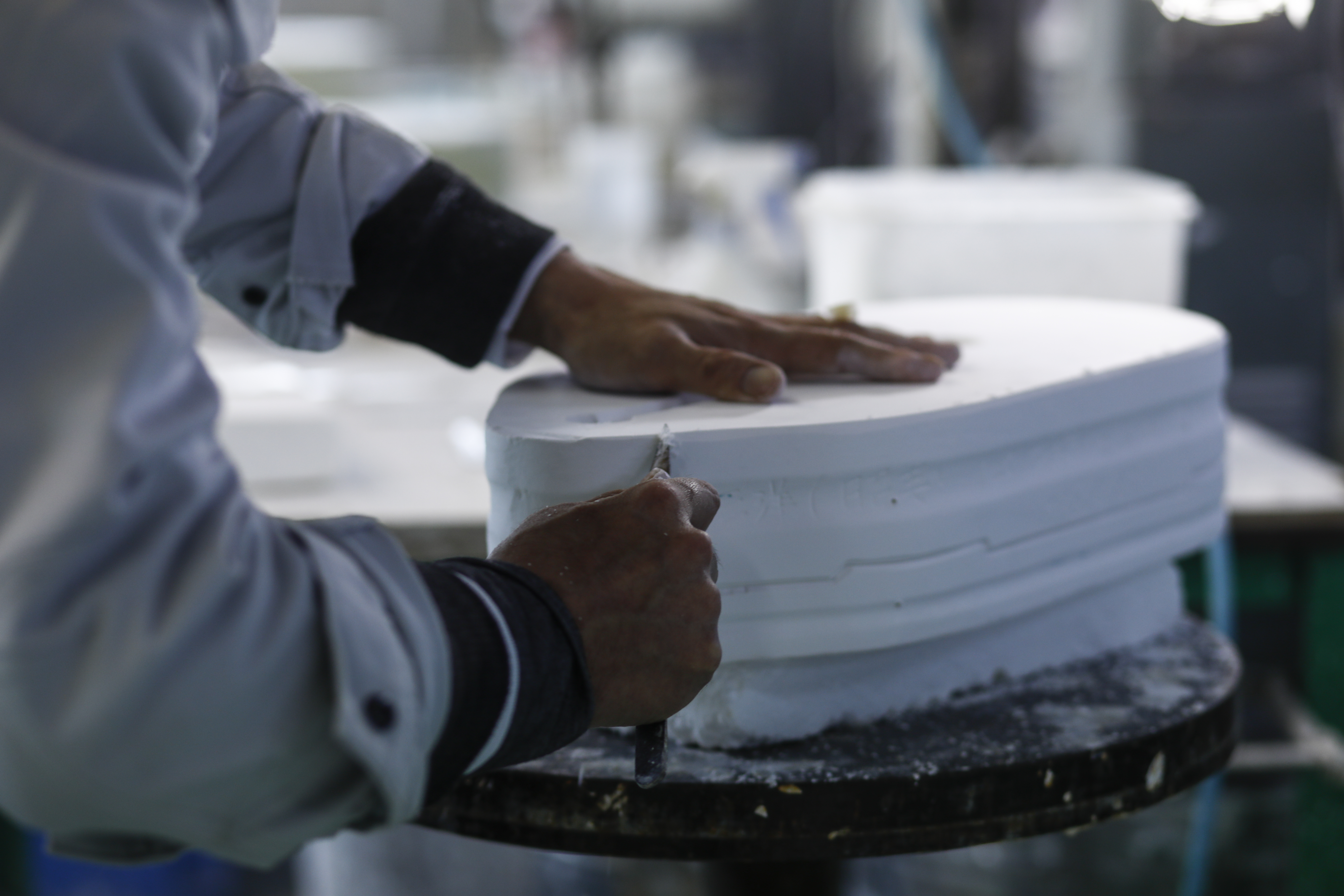 瀬戸物は「型取り」ののち、「焼き」を入れた時の収縮率が大きく、カートリッジ製品の筐体としては不向きとされましたが、JICOは独自のデザイン形状を愛知県瀬戸市の工房と制作、岐阜県土岐市織部焼の窯元と2年間に渡り収縮率の検討を重ねました。さらに量産最終工程でJICO本社工場レコード針職人による手加工を加え、製品化に成功しました。また、ヘッドシェルとの取り付け台座は天然木を使いました。瀬戸物キャビネットの意匠には、幸せを絡め取る網をイメージした「彫」が施されています。純日本製手作りMCカートリッジです。