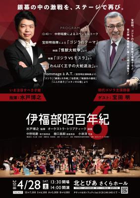 樋口真嗣監督は、2017年10月31日に伊福部昭百年紀の副実行委員長に就任。2018年4月28日に開催される同コンサートへ「わんぱく王子の大蛇退治」のオリジナルスコアによる演奏を是非!とのリクエストから演奏が決定しました。