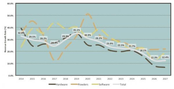 Projected Metal Additive Manufacturing Segment Growth Rates, by Primary Opportunity, 2014-2027(e)
