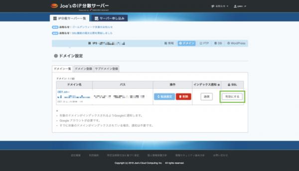 株式会社Joe'sクラウドコンピューティング(本社:大阪市 代表:田中 邦裕)は、2018年4月18日(水)より「Joe'sのIP分散サーバー Powered by SAKURA Inernet」上で動作しているウェブサイトを簡単にSSL化できる「SSL機能」の提供を開始いたしました。