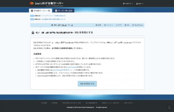 Joe’sクラウドコンピューティング、「Joe’sのIP分散サーバー」で無料SSL証明書「Let’s Encrypt」とHTTP/2に対応した「SSL機能」の提供を開始