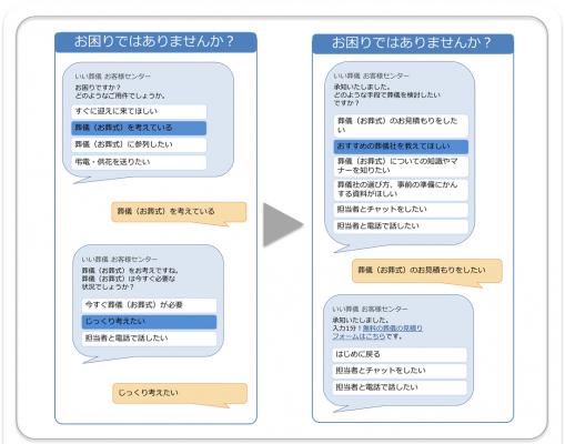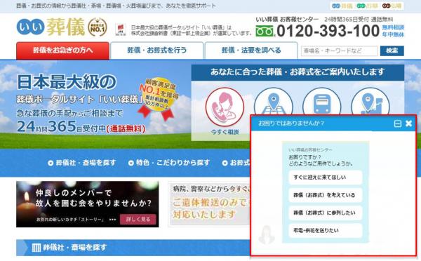 「いい葬儀」チャットボット利用イメージ:https://www.e-sogi.com/