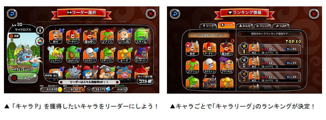 4月28日(土)より、全国のユーザーを相手にリアルタイムで戦い、ランキングを競いあう「リーグ」を開催!今回のリーグは「キャラリーグ」が同時開催いたします。勝利するとそのバトルでリーダーにしたキャラのキャラPを獲得することができます。獲得したキャラPによって、キャラごとにランキングが決定しますので、お気に入りのキャラでキャラPを集めましょう。ランキング報酬は、順位の高い順に5キャラ分まで獲得できます。また、リーグではお得な各種キャンペーンも同時開催されますので、どんどんリーグに挑戦しましょう!