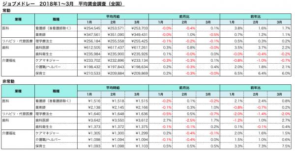 株式会社メドレー(本社:東京都港区、代表取締役医師:豊田 剛一郎、代表取締役社長:瀧口 浩平)が運営する医療介護求人サイト「ジョブメドレー」は、医療介護系8職種について、2018年1~3月の平均月給・時給をまとめました。