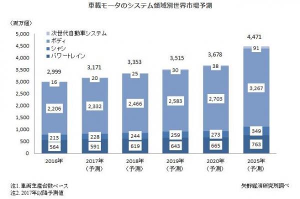 2016年の車載モータの世界需要は約30億個規模に到達