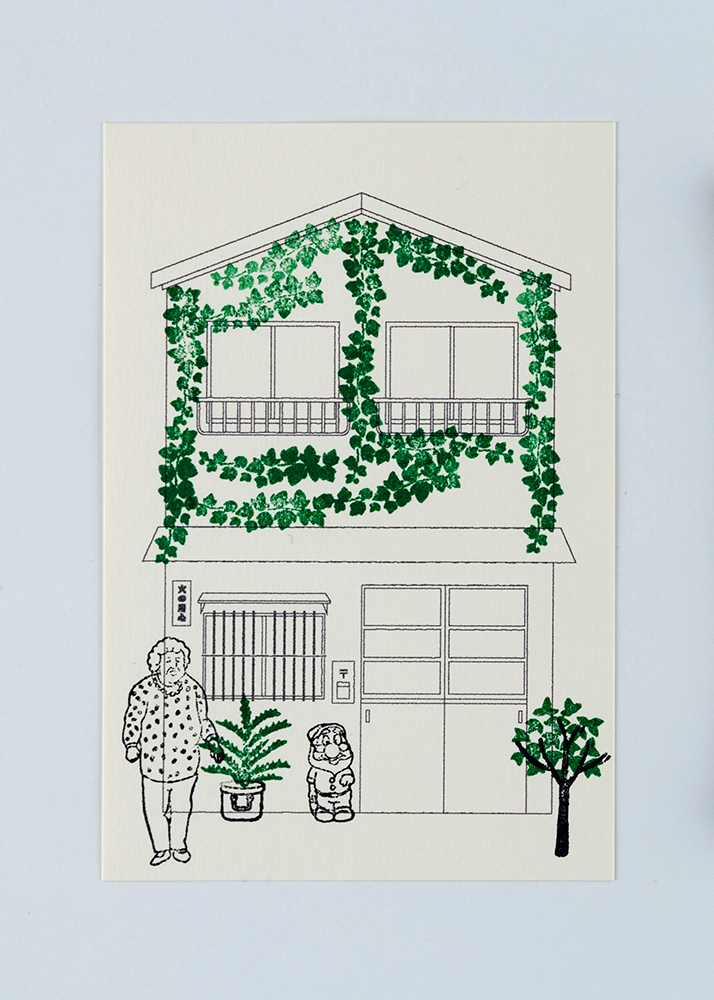 スターターキットは3種類用意され、それぞれ路上園芸のベースとなる家屋の図版(ポストカード)や、その建物の家主のはんこ、植物などの家ンゲイはんこがセットになっています。また、それぞれの家屋・家主に細かい設定が用意されており、感情移入しやすく工夫されております。加えて、パッケージそのものが家屋を模しているので、パッケージにもはんこを押して立体的な路上園芸を味わえます。
