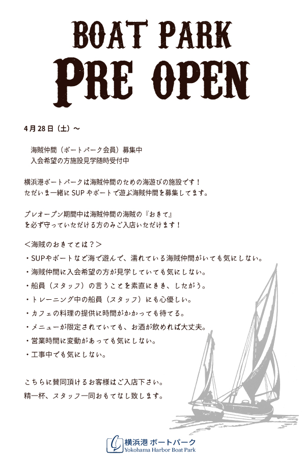 横浜港ボートパークのプレオープンに際してビードは以下のようなユニークなルールを設けています。