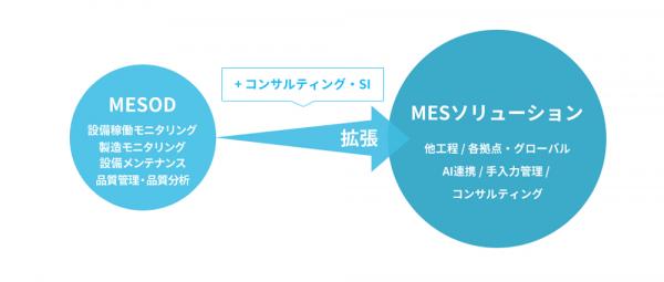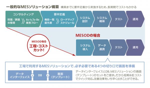 さらに、「MESOD」をベースに、お客様固有の要件をカスタマイズ開発で実装し、フル機能のMESシステムを構築できる「MESソリューション」を用意します。