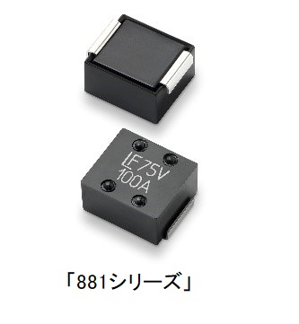 Electronic Products誌の編集長Richard Quinnell氏は次のように述べています。「ブレードサーバー、バックプレーン、高ワット電源などの高電流を要する基板への回路保護ヒューズの内蔵は、開発者にとって課題の多い作業です。小型の表面実装ヒューズを使用する場合には、単体での定格電流値が低いので複数のヒューズを並列接続して使用するか、または必要以上の能力を有する工業用大型ヒューズを使用する必要がありました。『881シリーズ』は、そうした状況を改善し、12.5×10×6.8mmの表面実装ヒューズで最大定格100Aを提供します。」