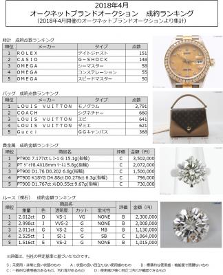 情報流通支援サービスの株式会社オークネット(本社:東京都港区/社長:藤崎清孝)は、2018年4月度のオークネットブランドオークションにおける成約点数および成約金額を集計し、ランキングベスト5をまとめました。