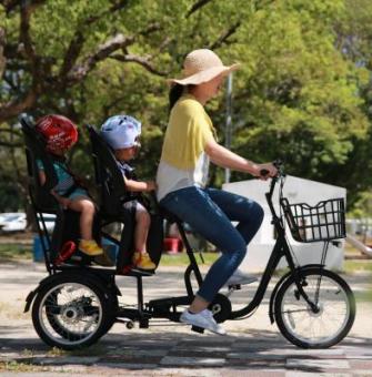 自転車用品を製造するオージーケー技研株式会社(本社:大阪府東大阪市、代表取締役:木村 秀元)は、6歳未満の双子や年子の幼児2人を乗せて公道を走ることができる、日本初のBAA(※)の認定を受けた「幼児2人同乗用三輪自車“ふたごじてんしゃ”」を5月31日に発売します。双子ママで“ふたごじてんしゃ”発案者の中原美智子さんとの出会いから商品開発をスタート。827人の試乗ママの要望を取り入れ、2年かけて完成しました。高い操作性と安全性、デザイン性で、何かと不便なことの多い双子ママの外出を応援する商品作りを指しました。