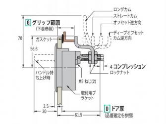 カムについても、より薄い厚みに対応するディープオフセット、スタンダードオフセット、もしくはストレート(オフセットなし)を取り揃えており、シャフト長での調整に加え、幅広い厚みに対応することができます。金属製のカムにはプラスチック製のキャップが付いており、カムキーパーとの接触時の金属音を軽減し、また筐体フレームの塗装や装飾の損傷を防ぎます。調整式グリップバージョンの取付には、従来の標準型と同様の取付穴を使用することができます。モジュール式のカムとラッチ本体は、用途に合わせ組み合わせることができます。