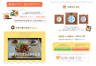 そこで、調理のご案内にあわせて、100円ショップ等で手軽に買えるお皿で盛付けることで