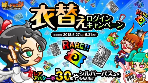 5月27日(日)より、ゲームにログインすると最大5日間、レアアバター券やシルバーパスなどのアイテムが1日1回もらえる「衣替えログインキャンペーン」が開催中です。期間中にレアアバター券30枚、ひとり用/協力用シルバーパス各2枚などがもらえるので、ログインして報酬を受け取りましょう!