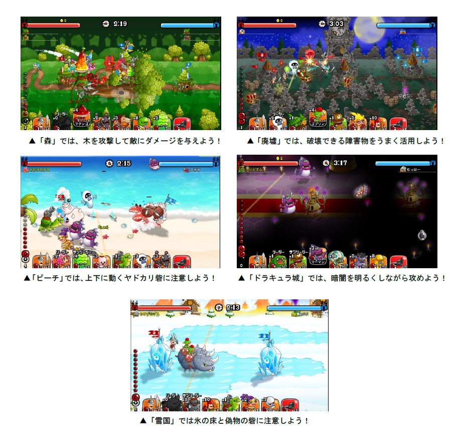 全国のユーザーたちを相手にリアルタイムで戦い、ランキングを競い合う「リーグ」が開催!今回のリーグでは、「リーグキーン争奪バトル」が同時開催され、期間中、リーグに勝利すると、所属しているリーグクラスに応じたキーンが、手に入ります。報酬は1日3回まで手に入れることができますので、たくさん挑戦してキーンを手に入れましょう!また、「みんなで」リーグでのバトルごとにマップが変化する「スペシャルミックスバトル」も同時開催。今回は、「森」「廃墟」「雪国」「ドラキュラ城」「ビーチ」のマップが登場いたします。各マップの特徴を活かして、バトルの勝利に繋げましょう!