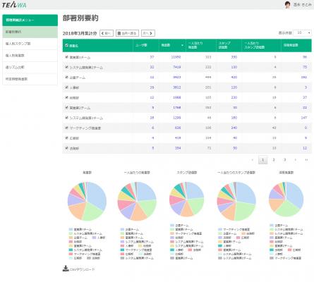 また、ご利用いただいているお客さまからスタンプの送受信数を把握することで組織毎の組織活性度を把握につなげたいというご要望が多くありました。TENWAでは、「ありがとう」「いいね」といった感情を補填するスタンプ利用を推進しており、従業員満足向上の一環とした“サンクスカード”としてもご利用いただいております。ビジネスコミュニケーションツールTENWAのデータを集計することで業務改善・組織改善に役立つのではと考え、この度のリリースに至りました。