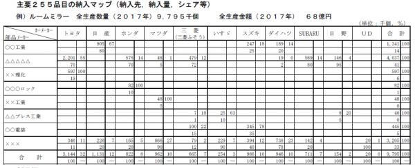 総合技研株式会社が出版した「2018年版 主要自動車部品255品目の国内における納入マトリックスの現状分析」は、主要自動車部品255品目の部品メーカー⇒カーメーカーへの納入先、納入量データを基に部品毎の納入マトリックスを提供しています。