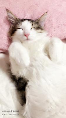 (2)犬、猫がお腹を上向きにしている姿(へそ天)が写真の中に一匹又は複数含まれていることを条件とします。