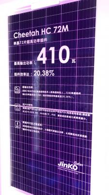 その中で、Cheetah 410W超効率モジュールは、グローバルで今まで商業化の量産を実現した一番高効率のモジュールタイプです。このシリーズのモジュールは初めて、主流出力が4.0時代、即ち400W以上まで向上し、ジンコソーラーは「中国スーパー・トープランナー」など究極の高出力市場ために作ったものです。