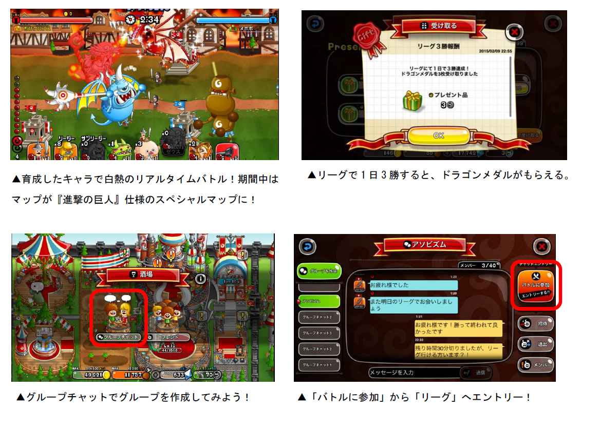 (1) 「仲間と攻撃」で勝利すると「ドラゴンメダル」2枚プレゼント!(1日1回まで)