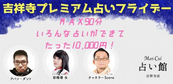 今日の占いの制作や占い師募集管理を行うマリーシェル合同会社(本社:埼玉県さいたま市、代表:鯉沼寿慈)は、2018年6月15日(金)に吉祥寺のマリーシェル占い館において、90分間占いし放題の占いイベント『プレミアム占いフライデー』を開催いたします。
